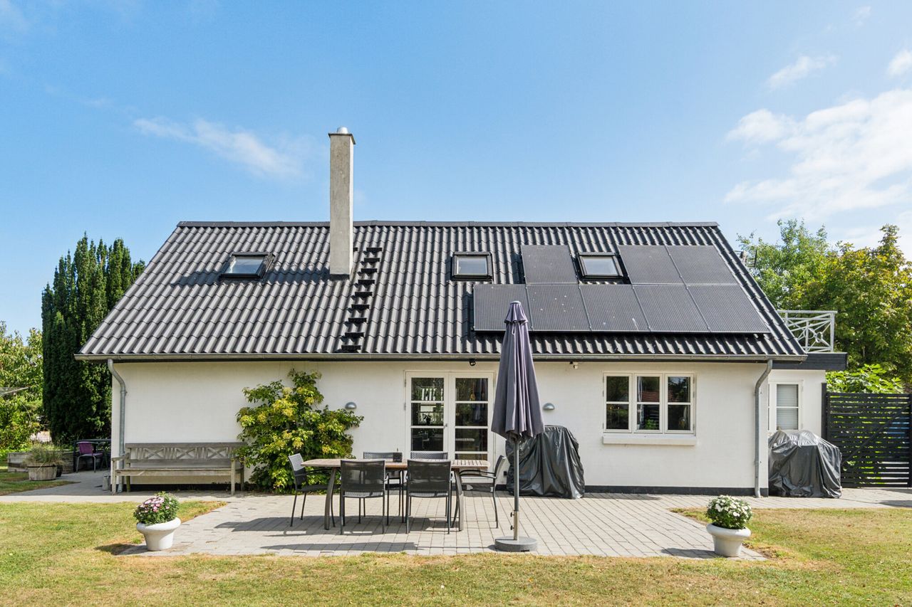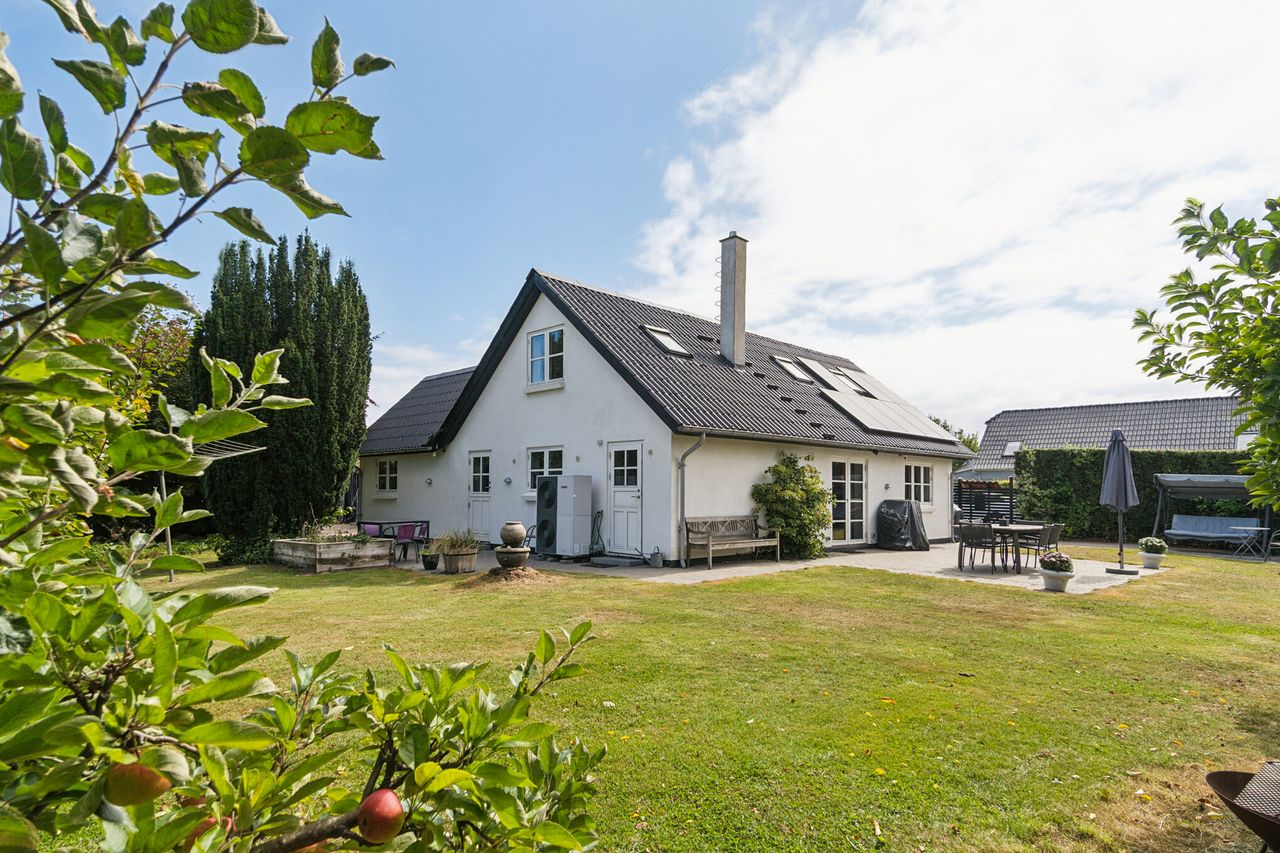 Som en særlig bonus rummer ejendommen en stor garage på 65 m2, der nemt kan bruges som værksted eller til den pladskrævende hobby. Over garagen er et disponibelt rum, som giver et væld af muligheder – hvad enten det er til hobbyrum eller opbevaring.